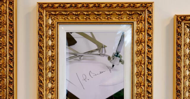 Andrew Desiderio, a senior congressional reporter for Politico, first reported on the incident and shared the photo on social media. The photo showed Biden’s face with a bolded signature underneath, presumed to be Trump’s.